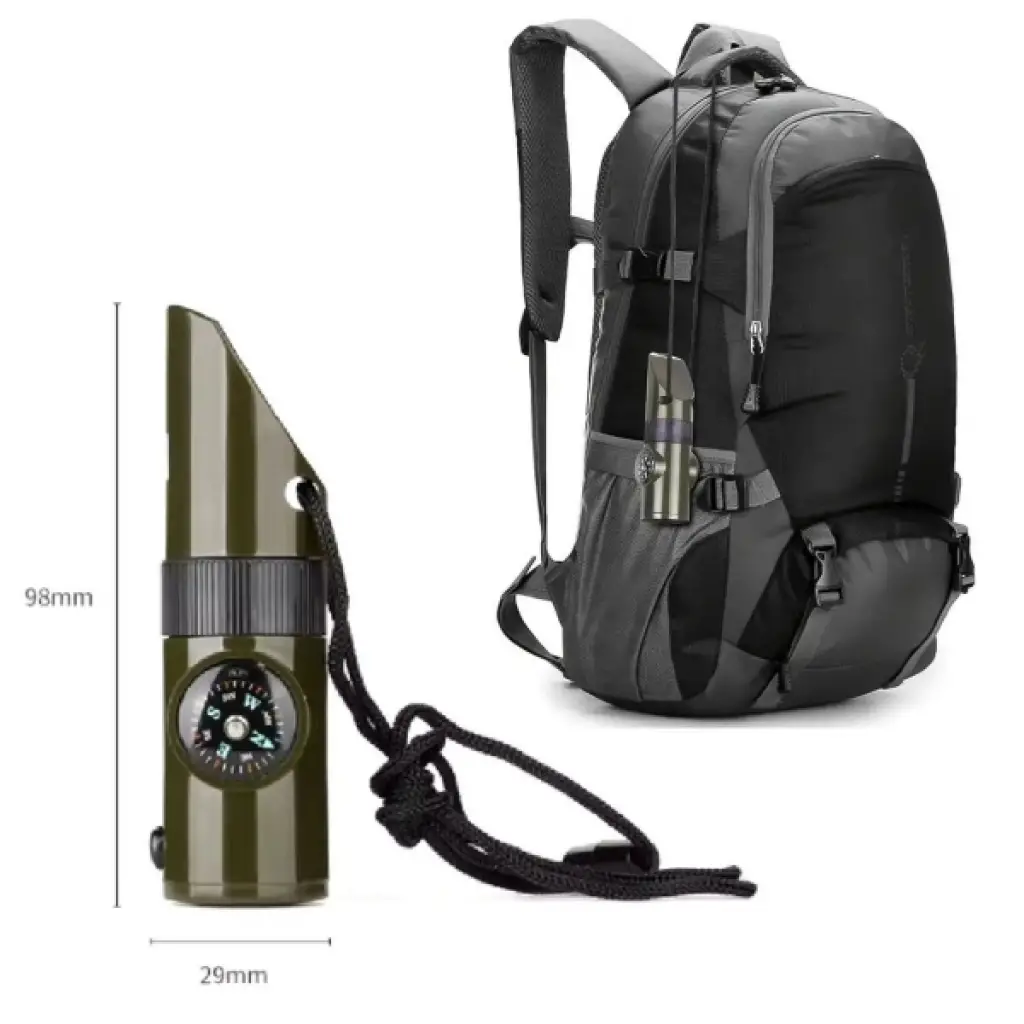 7’Sİ 1 ARADA ACİL DURUM DÜDÜĞÜÜrün Özellikleri7’si 1 arada acil durum düdüğü, doğa yürüyüşleri, kamp, avcılık ve acil durum senaryoları için çok fonksiyonlu ve pratik bir yardımcı olarak tasarlanmıştır. Entegre el feneri düşük ışık koşullarında ve gece yolculuklarında aydınlatma sağlarken, dahili termometre bulunduğunuz ortamın sıcaklığını anlık olarak takip etmenize yardımcı olur. Hassas pusulası yön bulmayı kolaylaştırarak kaybolma riskini azaltır. Büyüteç özelliği küçük detayları net şekilde görmenizi sağlarken, gövde içinde yer alan depolama bölmesi kibrit, iğne veya küçük acil durum malzemeleri için saklama alanı sunar. Güçlü düdük bölümü acil durumlarda yüksek sesle sinyal vererek çevredeki dikkatleri üzerinize çeker. Kompakt, hafif ve dayanıklı yapısı sayesinde çantada, boyunda veya cebinizde rahatlıkla taşınabilir. Kamp, trekking, dağcılık, izcilik ve günlük outdoor aktivitelerinde güvenlik ve pratikliği bir arada sunar.Paket İçeriği1 adet 7’si 1 arada acil durum düdüğü