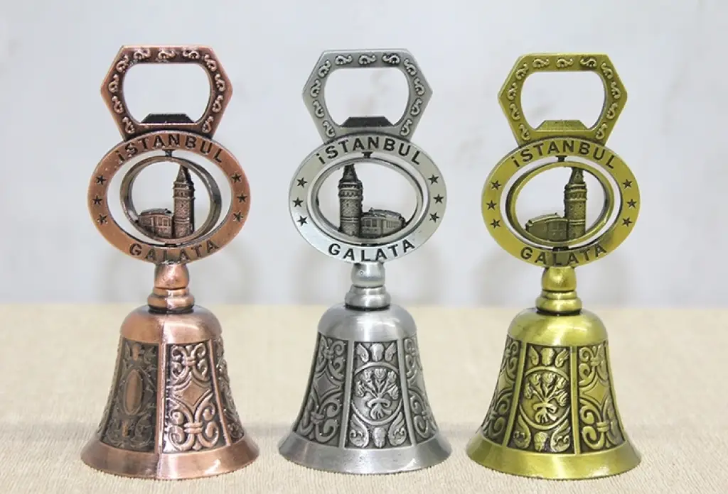 AÇACAKLI GALATA TEMALI EL ÇANIÜrün ÖzellikleriAçacaklı Galata Temalı El Çanı, kompakt tasarımı ve fonksiyonel yapısıyla hem dekoratif hem de pratik kullanım sunan özel bir üründür. 8 cm boyutundaki yapısı sayesinde masaüstü, raf ve vitrin dekorasyonunda zarif bir görünüm oluşturur. Üzerinde yer alan Galata temalı detaylar ürüne turistik ve koleksiyonluk bir karakter kazandırır. Alt kısmında bulunan açacak fonksiyonu sayesinde yalnızca dekoratif değil, aynı zamanda günlük kullanım için de avantaj sağlar. Metal gövde yapısı sağlam ve estetik bir duruş sunar. Gönderim sırasında görselde yer alan renklerden biri olarak gönderilmektedir. Küçük boyutuyla pratik kullanım sunan bir açacaklı el çanı modelidir. Şehir simgeli tasarımıyla dikkat çeken dekoratif bir Galata temalı metal çan alternatifidir.Ürün Teknik ÖzellikleriÖzellikAçıklamaÜrün AdıAçacaklı Galata Temalı El ÇanıBoyut8 cmMalzemeMetalÖzellikAçacak FonksiyonluTemaGalata TasarımıRenkGörseldeki Renklerden Biri Olarak GönderilirKullanım AlanıDekoratif ve Açacak Amaçlı KullanımPaket İçeriği1 Adet Açacaklı Galata Temalı El Çanı
