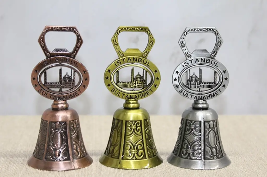 AÇACAKLI SULTANAHMET TEMALI EL ÇANIÜrün ÖzellikleriAçacaklı Sultanahmet Temalı El Çanı, dekoratif görünümü ve işlevsel tasarımıyla hem koleksiyonluk hem de günlük kullanım için tercih edilebilecek özel bir üründür. 10,5 cm boyutundaki kompakt yapısı sayesinde masaüstü, raf ve vitrin dekorasyonunda şık bir tamamlayıcı olarak kullanılabilir. Üzerinde yer alan Sultanahmet temalı detaylar ürüne turistik ve estetik bir karakter kazandırır. Alt kısmında bulunan açacak fonksiyonu sayesinde yalnızca dekoratif değil, aynı zamanda pratik bir kullanım da sunar. Metal gövde yapısı sağlam ve dengeli bir duruş sağlarken klasik tasarım çizgisi dikkat çeker. Gönderim sırasında görselde yer alan renklerden biri olarak gönderilmektedir. Hem süs hem kullanım avantajı sunan bir açacaklı el çanı modelidir. Şehir simgesi tasarımıyla öne çıkan dekoratif bir Sultanahmet temalı metal çan alternatifidir.Ürün Teknik ÖzellikleriÖzellikAçıklamaÜrün AdıAçacaklı Sultanahmet Temalı El ÇanıBoyut10,5 cmMalzemeMetalÖzellikAçacak FonksiyonluTemaSultanahmet TasarımıRenkGörseldeki Renklerden Biri Olarak GönderilirKullanım AlanıDekoratif ve Açacak Amaçlı KullanımPaket İçeriği1 Adet Açacaklı Sultanahmet Temalı El Çanı