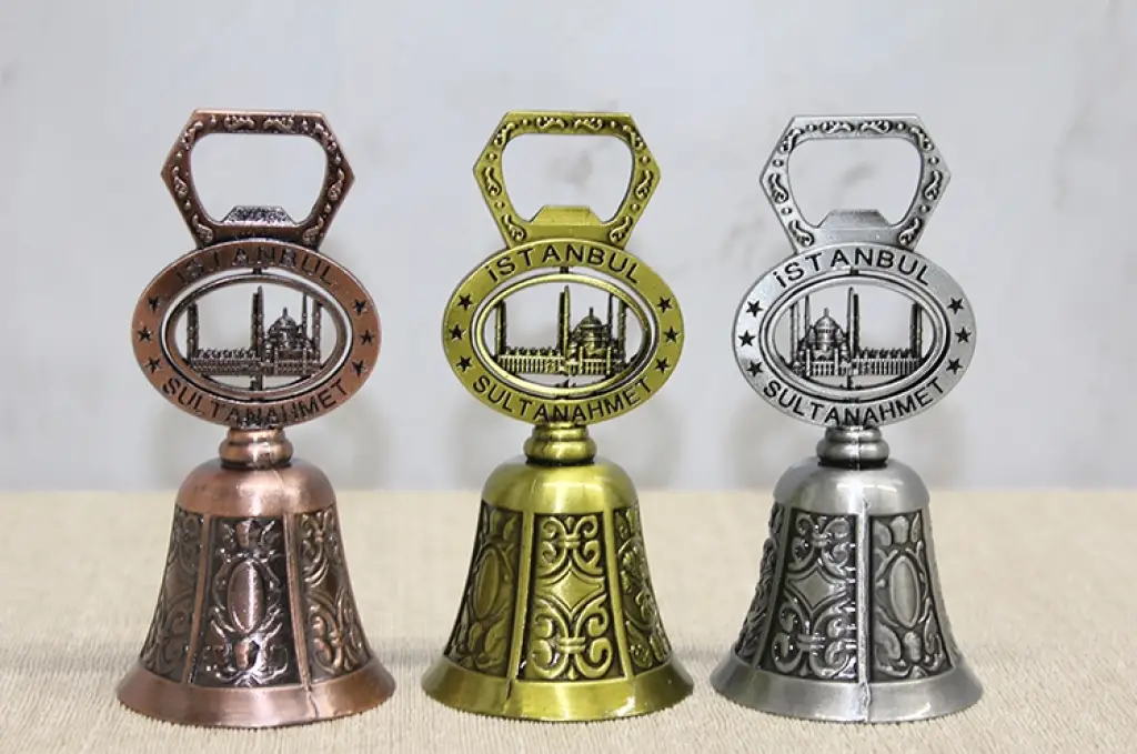 AÇACAKLI SULTANAHMET TEMALI EL ÇANIÜrün ÖzellikleriAçacaklı Sultanahmet Temalı El Çanı, dekoratif görünümü ve işlevsel tasarımıyla hem koleksiyonluk hem de günlük kullanım için tercih edilebilecek özel bir üründür. 10,5 cm boyutundaki kompakt yapısı sayesinde masaüstü, raf ve vitrin dekorasyonunda şık bir tamamlayıcı olarak kullanılabilir. Üzerinde yer alan Sultanahmet temalı detaylar ürüne turistik ve estetik bir karakter kazandırır. Alt kısmında bulunan açacak fonksiyonu sayesinde yalnızca dekoratif değil, aynı zamanda pratik bir kullanım da sunar. Metal gövde yapısı sağlam ve dengeli bir duruş sağlarken klasik tasarım çizgisi dikkat çeker. Gönderim sırasında görselde yer alan renklerden biri karışık olarak gönderilmektedir. Hem süs hem kullanım avantajı sunan bir açacaklı el çanı modelidir. Şehir simgesi tasarımıyla öne çıkan dekoratif bir Sultanahmet temalı metal çan alternatifidir.Ürün Teknik ÖzellikleriÖzellikAçıklamaÜrün AdıAçacaklı Sultanahmet Temalı El ÇanıBoyut10,5 cmMalzemeMetalÖzellikAçacak FonksiyonluTemaSultanahmet TasarımıRenkGörseldeki Renklerden Biri Karışık Olarak GönderilirKullanım AlanıDekoratif ve Açacak Amaçlı KullanımPaket İçeriği1 Adet Açacaklı Sultanahmet Temalı El Çanı