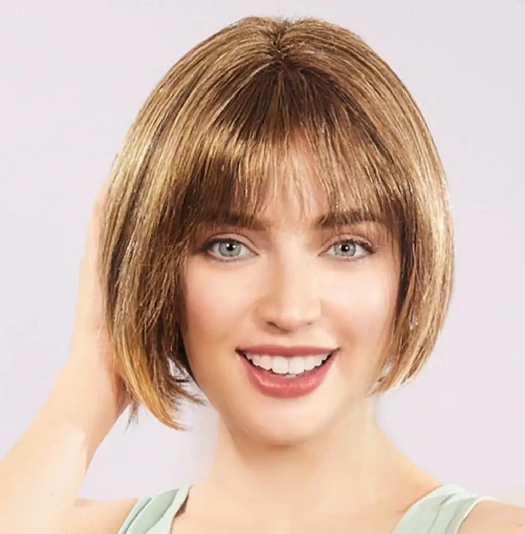 Açık Kahve Renk Düz Kesim Küt Parti Peruğu: Cesur ve Göz Alıcı Bir Görünüm İçin