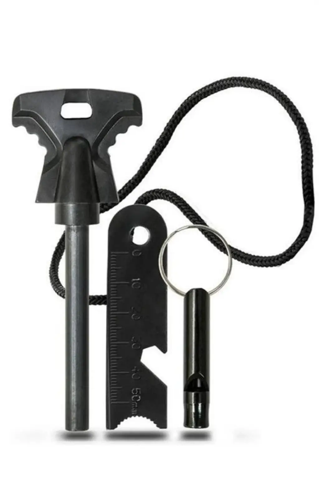 Acil Durum Magnezyum Çubuk Çakmaktaşı Hayatta Kalma Ateş Başlatıcı Çakmak Kiti Düdük Hediyeli