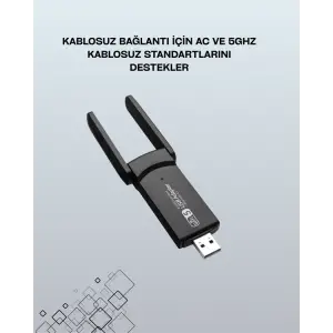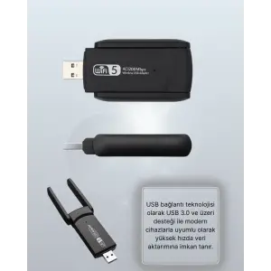 Yüksek Hızlı 1200 Mbps Çift Bant USB WiFi Adaptör – Güçlü Sinyal, Geniş Uyumluluk