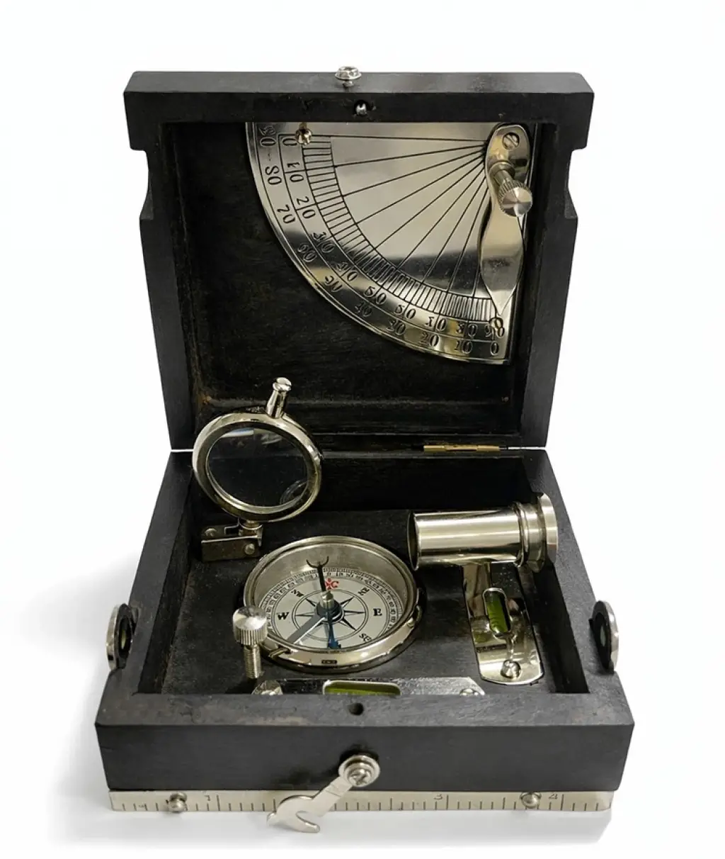Ahşap Kutulu İşlemeli Pirinç Pusula Seti