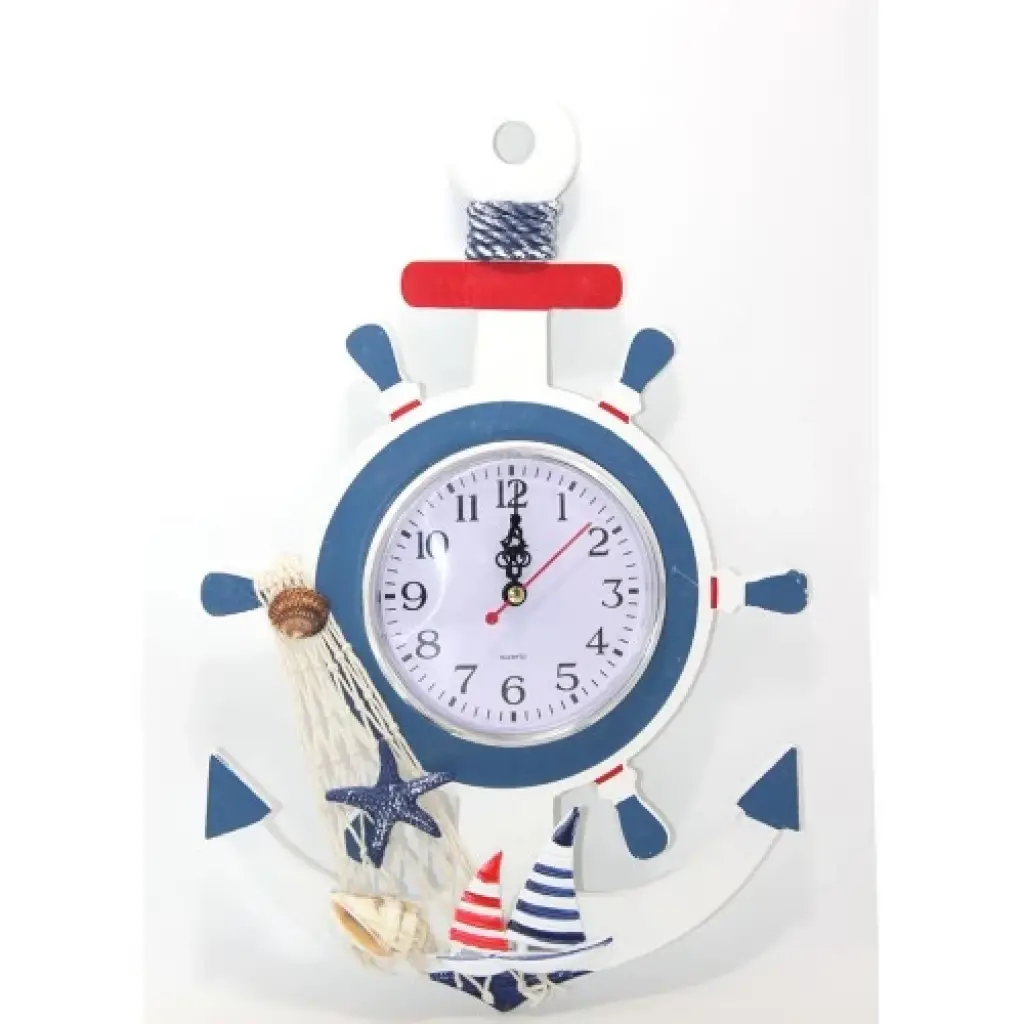 AHŞAP MARİN DÜMENLİ VE ÇAPA TASARIMI SAAT MODEL 2Ürün ÖzellikleriAhşap marin dümenli ve çapa tasarımı saat model 2, 32x22 cm boyutlarında şık bir deniz temalı dekoratif saattir. Ahşap malzeme ve marin tarzı detaylar, evinize veya ofisinize deniz atmosferi katacaktır. Saatin etrafındaki dümen ve çapa tasarımı, denizci ruhunu yansıtırken, pratik kullanımı ile hem dekoratif hem de fonksiyonel bir üründür. Ayrıca, renkli denizci detaylarıyla estetik bir görünüme sahip olup, deniz temalı dekorasyonlara mükemmel uyum sağlar.Paket İçeriği1 Adet Ahşap Marin Dümenli ve Çapa Tasarımı Saat Model 2