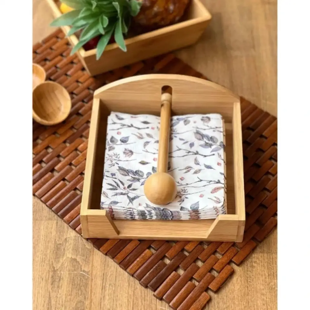 AHŞAP PEÇETELİKÜrün ÖzellikleriDoğal ahşap malzemeden üretilmiş bu şık peçetelik, masalarınıza zarif bir dokunuş katacaktır. Ahşap malzeme, dayanıklı ve uzun ömürlüdür. Şık tasarımı ile hem dekoratif hem de işlevsel bir üründür. Üzerinde yer alan küçük ahşap tutacak, peçetelerin düzenli bir şekilde kullanılmasını sağlar. Bu peçetelik, özellikle evde, restoranlarda veya ofislerde kullanıma uygundur.Paket İçeriği1 Adet Ahşap Peçetelik