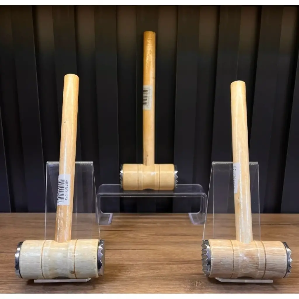 AHŞAP SAPLI ET DÖVME ÇEKİCİÜrün ÖzellikleriAhşap Saplı Et Dövme Çekici, mutfağınızda etleri kolayca dövebilmeniz için tasarlanmış pratik bir araçtır. Etin daha kolay pişmesi ve lezzetinin artması için etin dokusunu yumuşatarak, daha yumuşak ve lezzetli yemekler hazırlamanıza olanak tanır. Ahşap sapı sayesinde rahat kavranır ve uzun süreli kullanımda konfor sağlar. Üst kısmındaki metal dişli yapısı etleri eşit şekilde döverek düzgün sonuç almanızı sağlar. Hem evde hem de profesyonel mutfaklarda kullanılabilecek dayanıklı bir üründür.Paket İçeriği1 Adet Ahşap Saplı Et Dövme Çekici