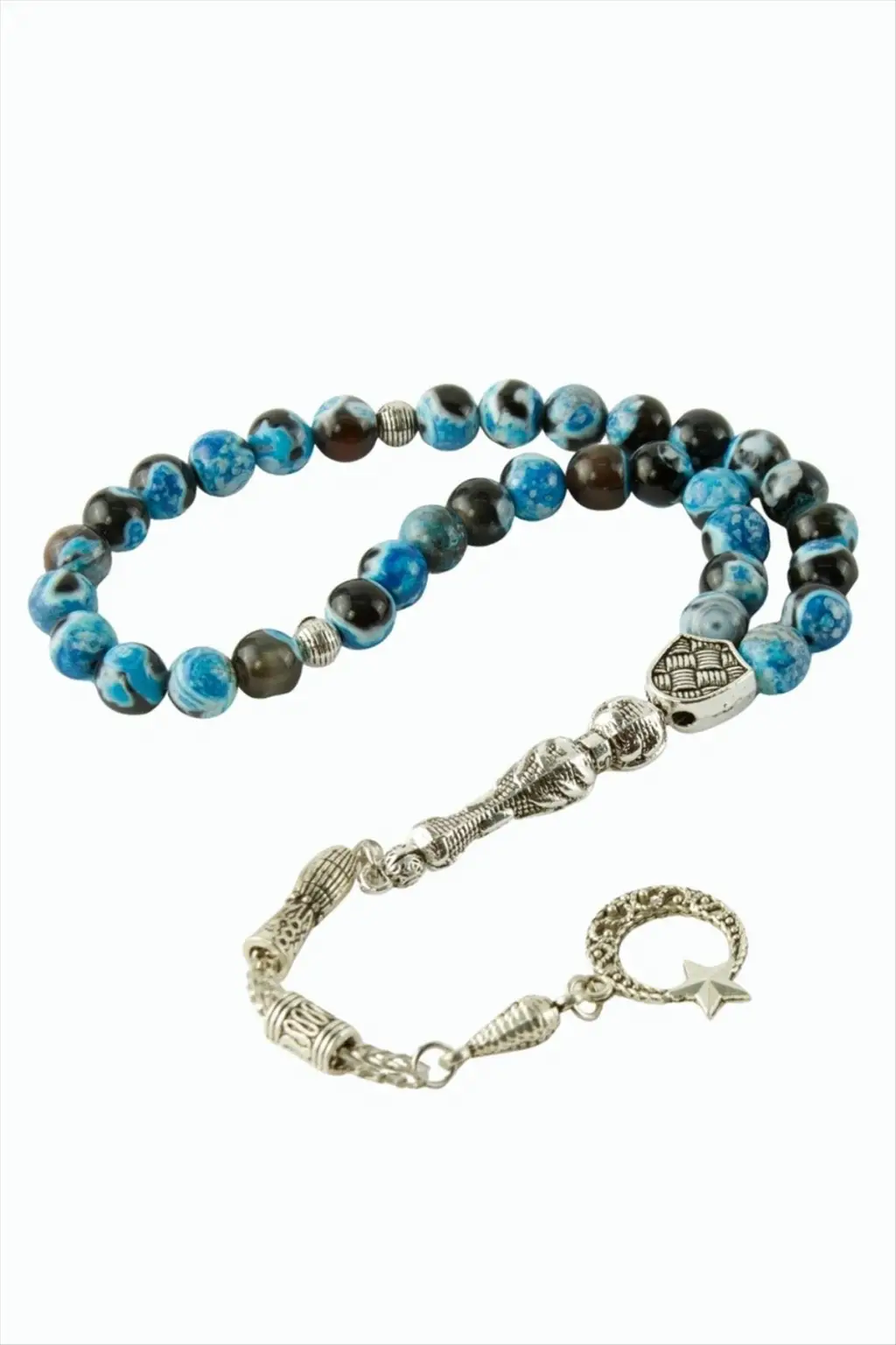 Tesbih; Ürün malzemesi kaplangözü ve kuvars taşından imal edilmiştir. Taşlar misina üzerine dizilmişdir. Taş boyutu 8 mm'dir. Püskül modelleri asortilidir. Siparişlerinizde karışık olarak gönderilecektir.