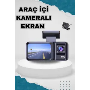 1080P 3 Lensli WİFİ Araç İçi Kameralı Ekran DVR Kaydedici Gece Görüşlü