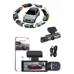 3 Kameralı 2 İnç 1080P Araç İçi Kamera Sürüş Kamerası CarPlay