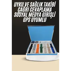Akıllı Saat 7 Kordon Hediyeli Takvim Alarm Nabız Ölçer Bildirim Görme Sesli Görüşme