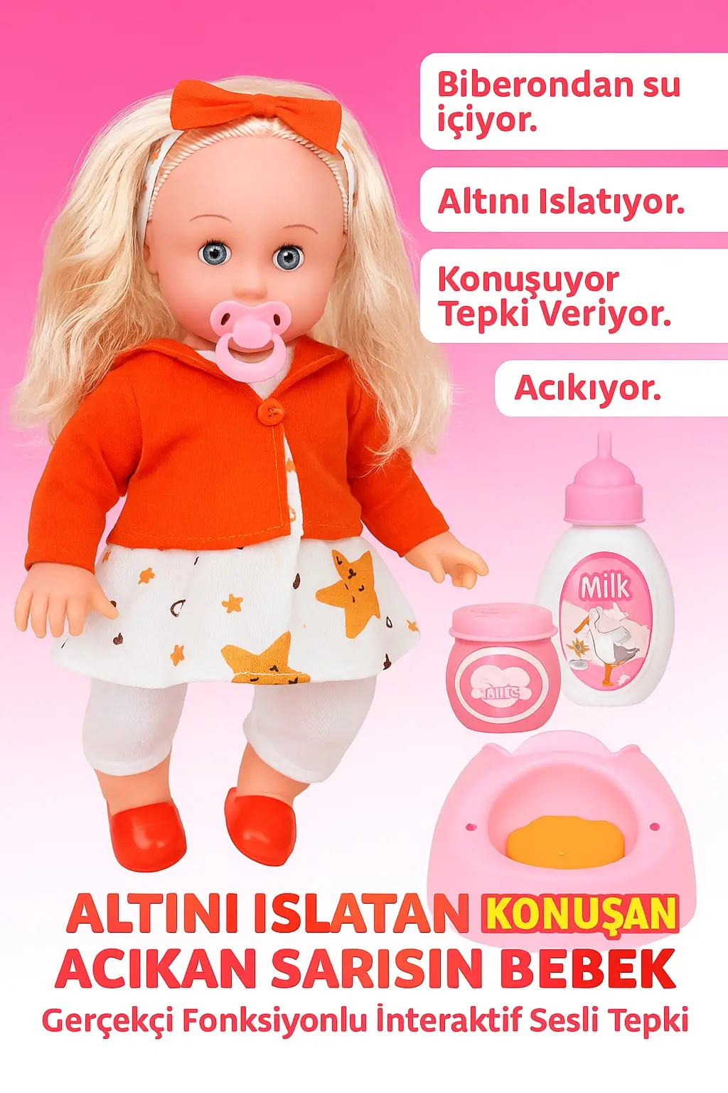 Altını Islatan ve Konuşan Sarışın Bebek, çocuklara hem eğlenceli hem de öğretici bir oyun deneyimi sunar. Gerçekçi fonksiyonları sayesinde küçükler rol yapma oyunlarıyla empati, sorumluluk ve bakım duygularını geliştirir.