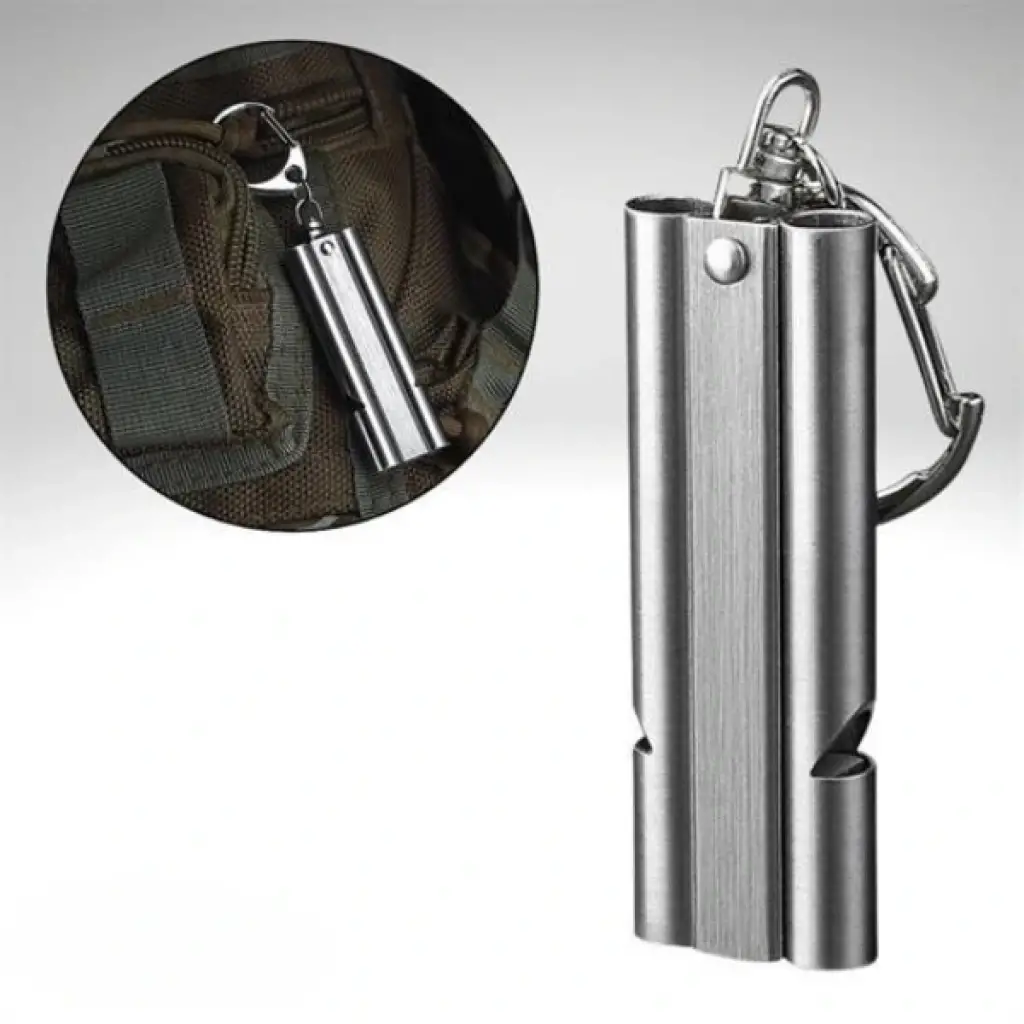 ALÜMİNYUM SOS DÜDÜK ANAHTARLIKÜrün ÖzellikleriYüksek ses gücü ve dayanıklı yapısıyla Alüminyum SOS Düdük Anahtarlık, doğa yürüyüşlerinden kamp aktivitelerine, spor etkinliklerinden acil durumlara kadar her ortamda güvenle kullanılabilir. Kompakt boyutu sayesinde anahtarlık olarak kolayca taşınabilir ve her an ulaşılabilir durumda olur. Paslanmaz çelik ve alüminyum alaşım malzeme yapısı, uzun ömürlü kullanım sunarken suya ve zorlu hava koşullarına karşı da dayanıklıdır.Acil durumlarda 150 desibele kadar ses çıkarabilen bu düdük, yardım çağrısı yapmak için mükemmeldir. Ayrıca evcil hayvan eğitimi, açık hava sporları, kamp, yürüyüş ve dağcılık gibi aktivitelerde de rahatlıkla kullanılabilir. Pürüzsüz yüzeyi ve ergonomik tasarımı sayesinde elde rahat tutuş sağlar ve kolay üfleme imkânı sunar.Hafif tasarımı (10 gram) sayesinde cebinizde, çantanızda veya kemerinizde fark edilmeden taşınabilir. Şık metalik rengiyle hem işlevsel hem de estetik bir görünüme sahiptir.Paket İçeriği1 adet Alüminyum SOS Düdük Anahtarlık