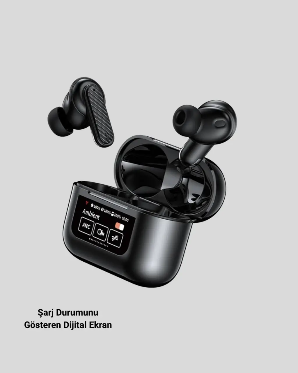 Müziği sadece dinlemek değil, hissetmek isteyenler için tasarlandı! Aktif Gürültü Engelleme (ANC) teknolojisiyle donatılmış bu kablosuz kulaklık, dış sesleri etkili şekilde izole eder. İster toplu taşımada, ister ofiste olun; dış dünyanın gürültüsünü unutup müziğin ritmine tamamen odaklanabilirsiniz.Kullanıcı dostu dijital ekran, kulaklığın ve şarj kutusunun pil seviyesini anlık olarak gösterir. Şarjınızın durumunu her an kontrol edebilir, beklenmedik kesintilerin önüne geçebilirsiniz. Bluetooth 5.3 bağlantısı, hızlı eşleşme ve kesintisiz veri aktarımı sunar.Dokunmatik kontrol sistemi, pratik kullanımın anahtarıdır. Tek dokunuşla müziği durdurabilir, aramayı yanıtlayabilir veya sesli asistanı aktif hale getirebilirsiniz. Fiziksel tuşlara veda edin, parmak ucunuzla kontrolü elinize alın!Yüksek kaliteli ses sürücüleri, güçlü bas performansı ve net tizlerle her tür müzikte üst düzey ses deneyimi yaşatır. Uzun pil ömrü sayesinde gün boyunca kesintisiz müzik ve konuşma keyfi sunar.Şık ve ergonomik tasarımıyla dikkat çeken bu kulaklık, konforu ve tarzı bir arada sunar. Günlük kullanımda, sporda ya da iş hayatında mükemmel bir yardımcıdır. Şimdi ANC teknolojisinin farkını keşfedin – sessizliğin içindeki müziği hissedin!