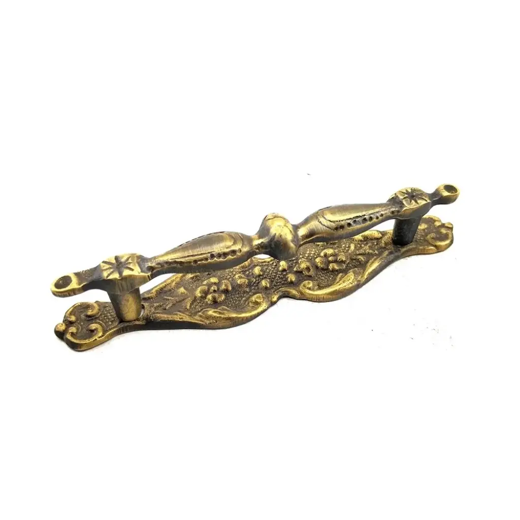 Antika Tarz Dekoratif Pirinç Aynalı Mobilya Çekmece Kulbu - 23x115 mm, Antik, estetik ve işlevsel bir mobilya aksesuarıdır. Pirinç malzeme ve antik kaplama ile klasik bir görünüm sunar, aynalı yüzeyi ile mobilya dekorasyonuna şık bir detay ekler. Bu kulp, vintage dekorasyonlarda ve restorasyon projelerinde mükemmel bir uyum sağlar, zarif ve sofistike bir dokunuş sunar.