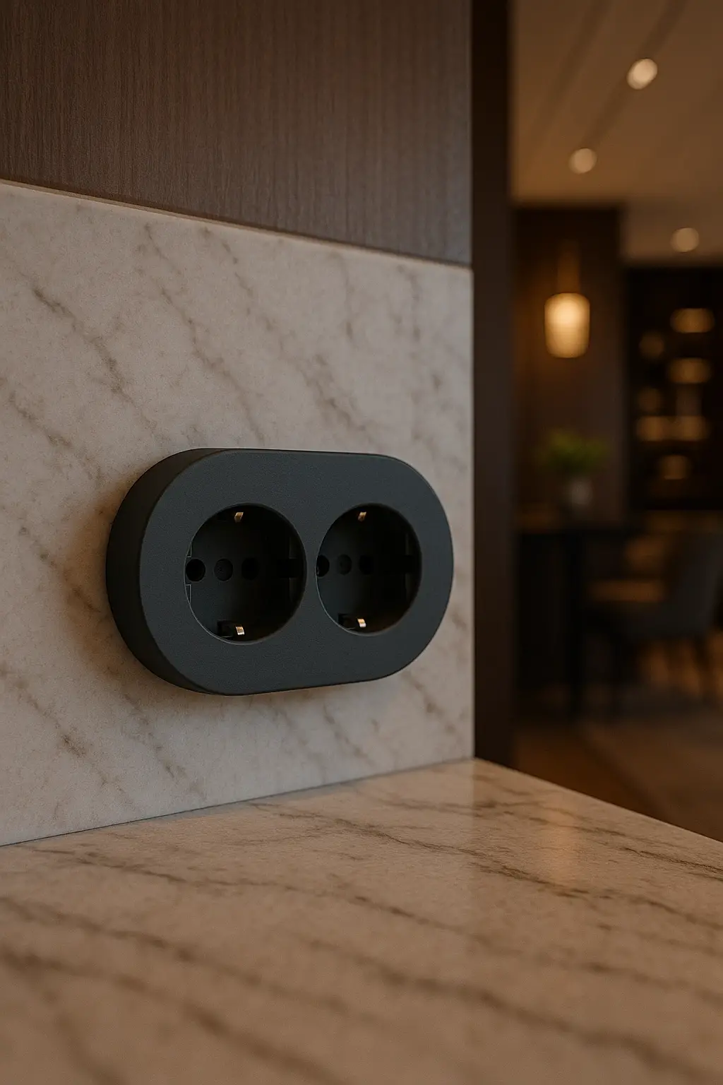 Bu antrasit renkli ikili topraklı priz ile elektrik tesisatınıza modern bir dokunuş yapabilirsiniz. Lüks ve şık tasarımıyla dikkat çeken bu dekoratif elektrik prizi, sıva üstü duvarlara kolayca monte edilebilir.