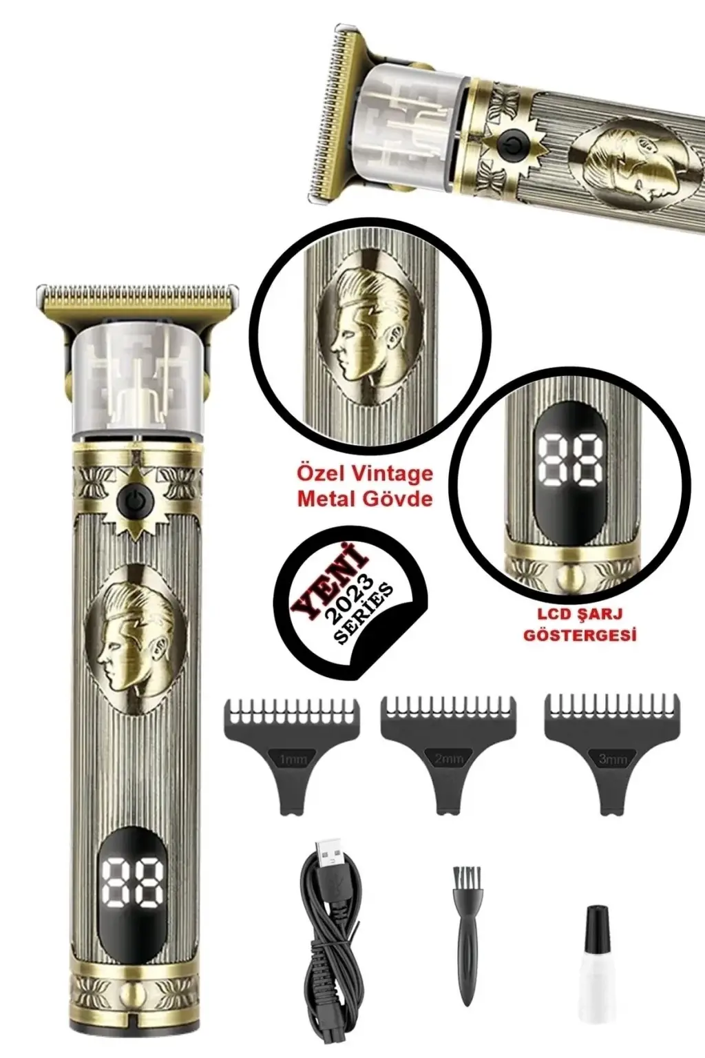Taşınabilir Şarjlı Saç Sakal Tıraş Makinesi – 3 Taraklı, Sessiz ve Ergonomik