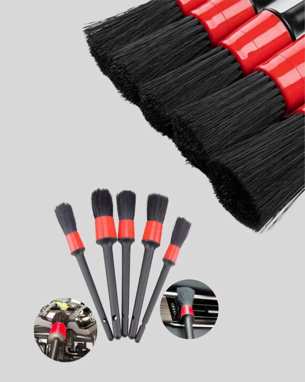 Bu araç bakım fırçası seti, hassas temizlik isteyen kullanıcılar için geliştirilmiştir. Yumuşak ve esnek kıllar, aracın tüm yüzeylerinde çizik bırakmadan temizlik imkânı sunar. 5 farklı boyut sayesinde, geniş alanlardan dar köşelere kadar her noktaya ulaşmak mümkündür.Özellikle jantlar, ön panjur, havalandırma delikleri ve logo çevreleri gibi kir tutmaya meyilli alanlar için idealdir. Fırçaların özel yapısı sayesinde toz, kırıntı ve inatçı kirler kolayca giderilir.Her fırçanın sap kısmında delik mevcuttur, bu sayede askıya asarak saklanabilir. Setin toplam ağırlığı 260 gramdır ve taşıması kolaydır. Tüm binek araçlar, motosikletler ve ticari araçlarla uyumludur.