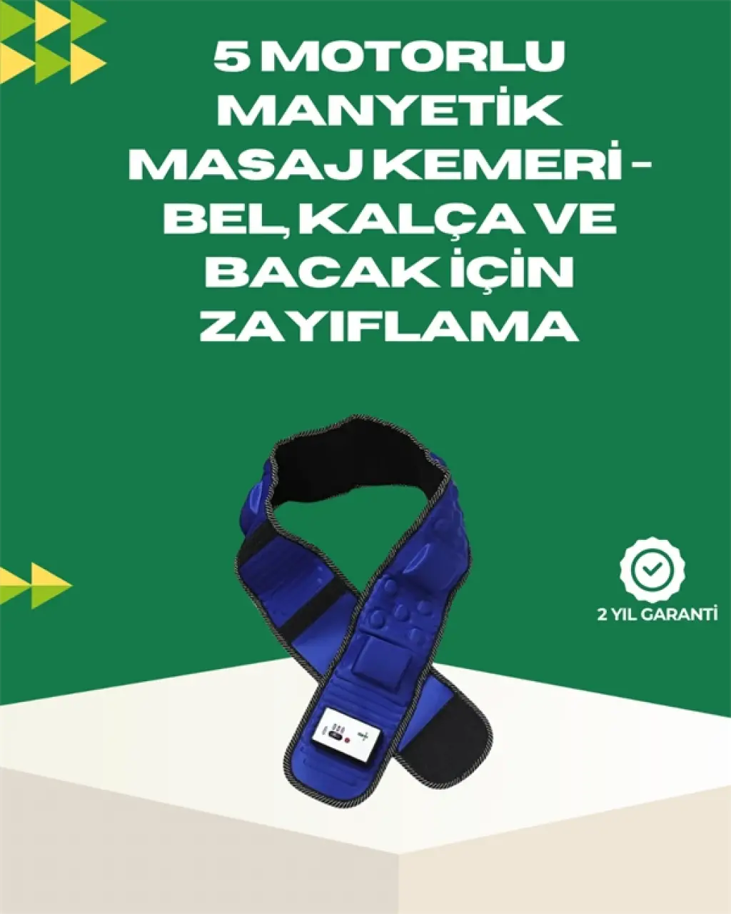 Titreşim, ısı ve manyetik alan teknolojisinin birleşimiyle tasarlanan bu zayıflama kemeri; sadece kilo vermeye destek olmakla kalmaz, aynı zamanda kas yorgunluğunu azaltarak gün sonunda ferahlık hissi sağlar. İçerisinde yer alan 20 güçlü mıknatıs, vücut yüzeyinde mikro kan dolaşımını uyarır ve metabolizmayı hızlandırarak yağ parçalanmasına yardımcı olur. Aynı zamanda, 5 adet yoğun titreşim motoru, yoğurma etkisiyle selülit görünümünü azaltabilir.Ayarlanabilir hız kademeleri, kullanıcının ihtiyacına göre hafif ya da yoğun masaj seçenekleri sunar. Kemerin toplam uzunluğu 128 cm, eni ise 13 cm olup, bel çevresi başta olmak üzere kalça, karın, bacak, kol ve sırt gibi farklı bölgelerde kullanılabilir.Cihaz, 100-240V giriş voltajı sayesinde birçok farklı prize uyum sağlar ve 12V / 1000mA çıkış gücüyle çalışır. Elektrik enerjisini depolayabilme özelliği, ürünü taşınabilir hale getirir. 7.2W motor gücü, verimli ve dengeli bir titreşim sağlayarak kasların rahatlamasını, cilt yüzeyinin sıkılaşmasını destekler.Şık tasarımı, ergonomik yapısı ve hafifliği (750g) sayesinde evde, iş yerinde veya seyahatte kolayca kullanılabilir. Kutulu şekilde gönderilir ve toplu alımlar için 69x31x57 cm karton ölçülerinde, 20 adetlik koli seçeneği mevcuttur.