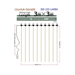 8 Fonksiyonlu Peri Perde Led Uzaktan Kumandalı Günışığı Perde Peri Led (3 mt x 3 mt)
