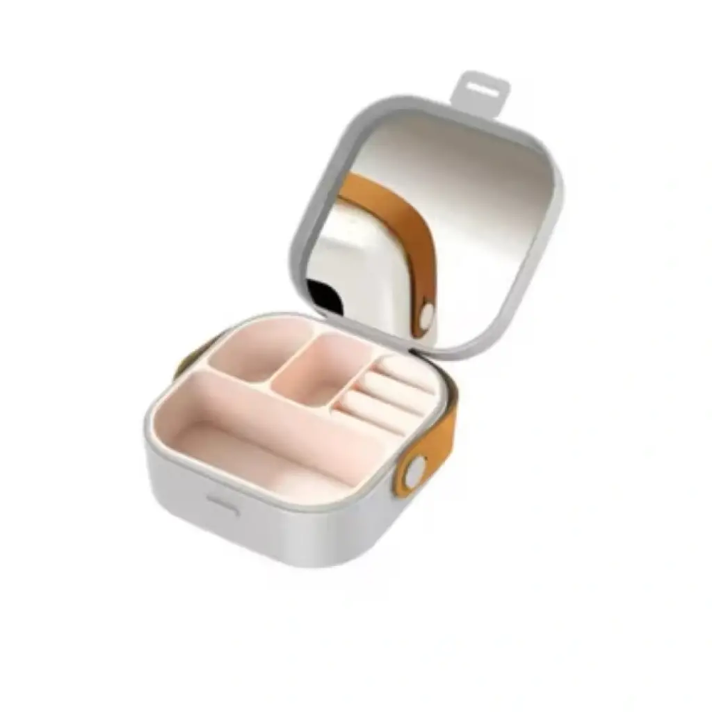 AYNALI MAKYAJ KUTUSU ÇANTA BOYÜrün ÖzellikleriAynalı Makyaj Kutusu, çanta boyu tasarımı ile taşınabilir bir makyaj ve takı düzenleyicidir. Kompakt yapısı sayesinde kolayca çantada taşınabilir ve seyahatlerde kullanılmaya uygundur. Kapağında bulunan ayna, makyaj yaparken veya aksesuar değiştirirken pratiklik sağlar. İç kısmındaki bölmeler sayesinde yüzük, küpe, kolye ve diğer takılar düzenli bir şekilde saklanabilir. Yumuşak renk tonları ve deri detaylı taşıma sapı ile estetik bir görünüm sunar. Plastik ve suni deri malzeme kullanılarak üretilmiş olup, uzun ömürlü bir kullanım sunar. Güvenli kapanma mekanizması sayesinde içindeki eşyalar dağılmadan saklanabilir.Paket İçeriği1 Adet Aynalı Makyaj Kutusu Çanta Boy