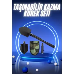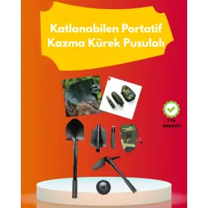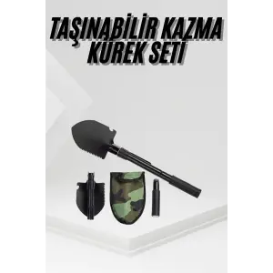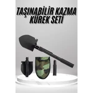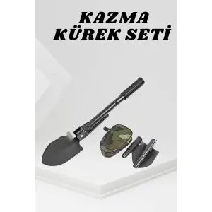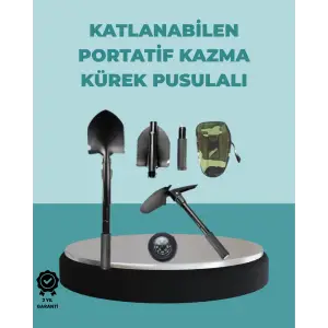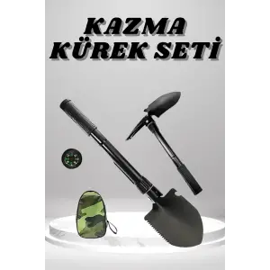 Katlanır Portatif Kazma Kürek Seti Portatif Çelik Taşıma Çantalı Pusulalı