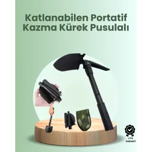 Katlanabilir Kamp Küreği Küçük Kazma Kürek Seti Pusulalı