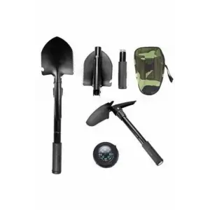 Pusulalı Katlanabilir Kazma Kürek Kamp Seti Kamp Küreği Portatif Çantalı