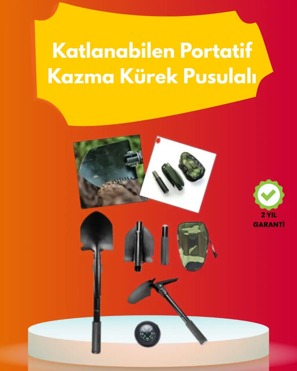 Doğa yürüyüşleri, kamp, off-road, acil durumlar ya da bahçe işleri gibi çeşitli alanlarda kullanıma uygun olan bu katlanabilir kürek seti, hafifliği ve kompaktlığı ile öne çıkar. Alaşımlı çelikten üretilen gövdesi yüksek dayanıklılık gösterirken, plastik kaplamalı metal sapı da elden kaymayı önler ve rahat tutuş sağlar.Tek sap üzerinde hem kazma hem kürek özelliği sunan bu ürün, işlevselliğiyle kampçılar ve doğa tutkunları için ideal bir çözümdür. Sap kısmında entegre pusula ile yön bulma işlevi de eklenmiş, böylece her an doğada güvendesiniz.Katlandığında ikiye ayrılır ve özel taşıma çantasına kolaylıkla yerleştirilir. Çantadaki askılar, kemer ya da sırt çantasına takılarak taşınabilir.