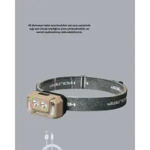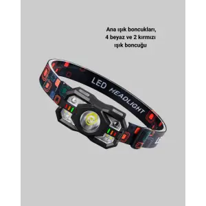 Sensörlü LED Kafa Lambası Kırmızı Beyaz Işık Ayarlanabilir