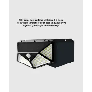 Güneş Enerjili 100 LED Dış Mekan Lamba – Hareket Sensörlü, 2200mAh Bataryalı Solar Aydınlatma