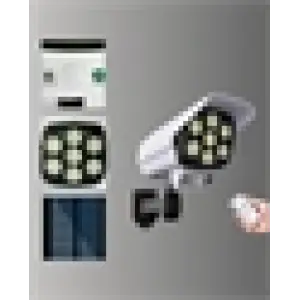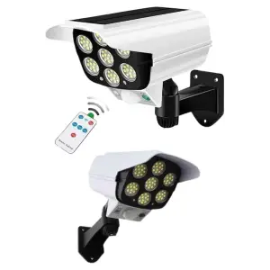 77 LED'li Güneş Enerjili Güvenlik Lambası ve Kukla Kamera – Hareket Sensörlü, 2400mAh Pilli