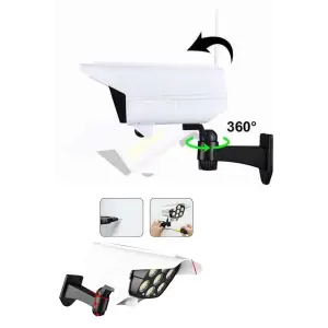 Güneş Enerjili LED Lamba + Güvenlik Kamerası Görünümlü– 5-8 m Hareket Algılamalı, Beyaz Işık