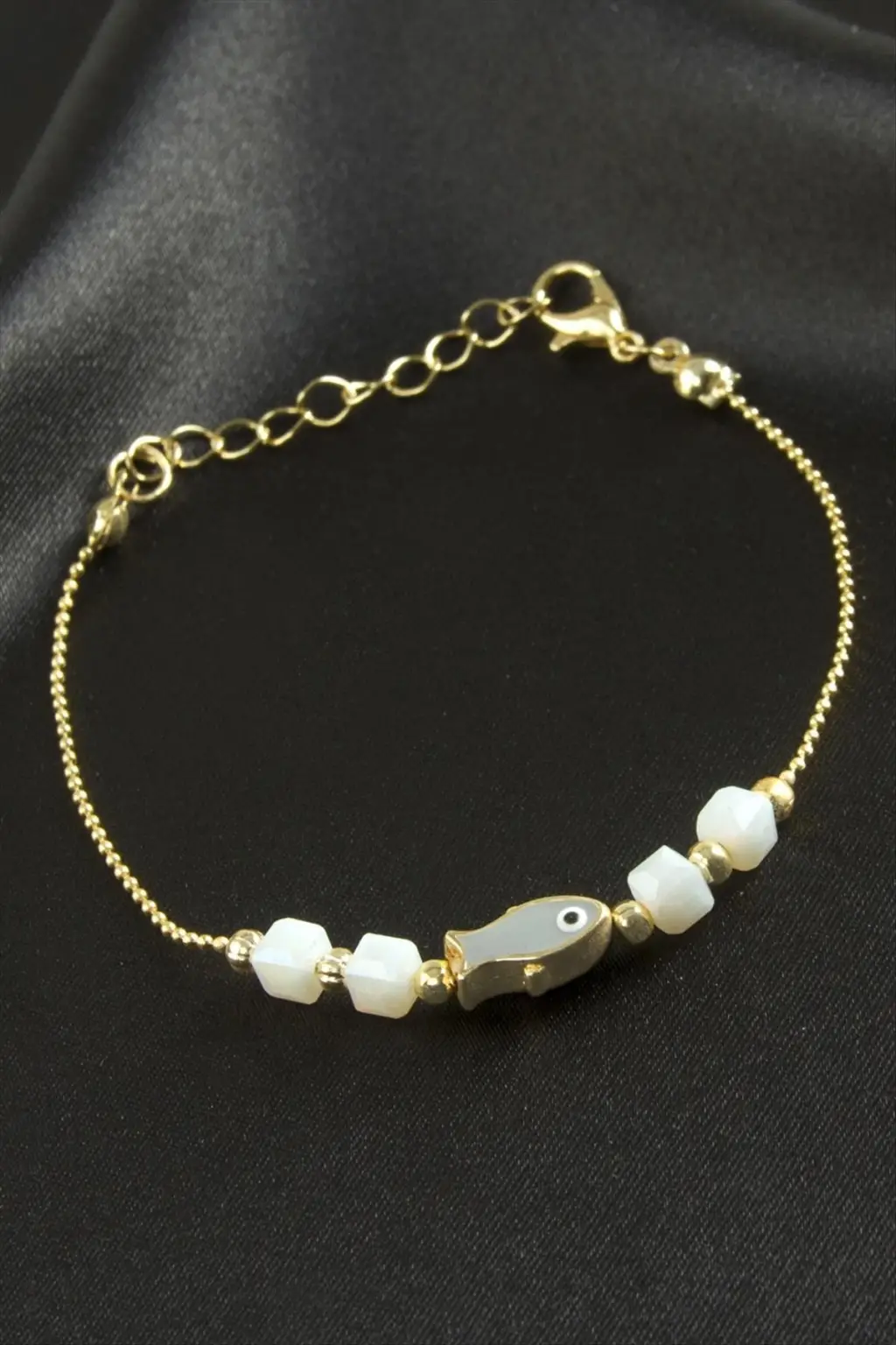 Bileklik; Ürün malzemesi metal ve kristaldir. Ürün boyu 19 cmdir. Kartlıdır. 1 sınıf kaliteli malzemeden üretilmiştir.