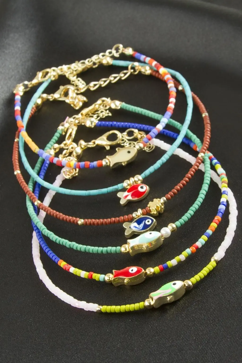 Bileklik; Ürün malzemesi metal, mine boyama ve miyoki boncuktur. Ürün boyu 19 cmdir. Ürün renkleri asortilidir. Siparişlerinizde karışık olarak gönderilecektir.