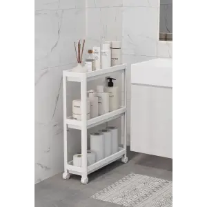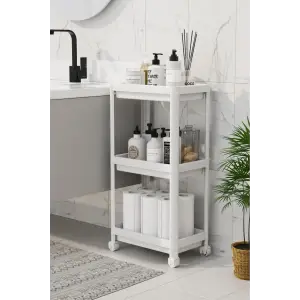 3 Katlı Banyo Raf Ünitesi (PEGGY) Beyaz Banyo Düzenleyici Şampuanlık Havluluk Dolap(BEYAZ)