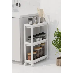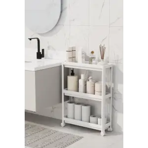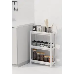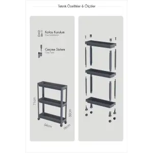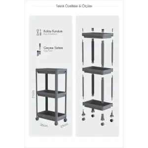 Tekerlekli 3 Katlı Çok Amaçlı Raf Ünitesi - Banyo Mutfak Düzenleyici Organizer Raf