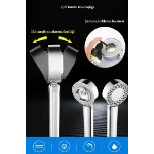 Çift Taraflı Yüksek Basınçlı Su Akıtan Şampuan Hazneli Tasarruflu Duş Başlığı