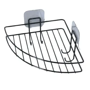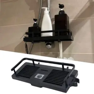 Kendiliğinden Yapışkanlı Montaj Gerektirmeyen Tek Katlı Banyo Askı Köşe Şampuanlık Siyah