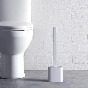 Duvara Monte Edilebilir Kapaklı Askılı Klozet Yumuşak Silikon Başlıklı Tuvalet Fırçası Seti