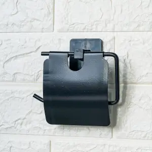 Kendiliğinden Yapışkanlı Siyah Paslanmaz Metal Kapaklı Tuvalet Kağıtlığı Aparatı