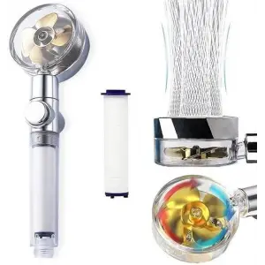 Turbo Pervaneli ve Filtreli Su Tasarruflu 360 Derece Dönebilen Tazyikli Duş Başlığı