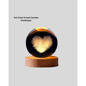 Ahşap Standlı Kalp Motifli Işıklı Cam Küre Hediye Seçeneği