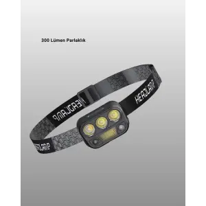 Usb Şarjlı Led Kafa Lambası 300 Lümen Güç Göstergeli