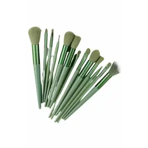 Makyaj Fırça Seti Yeşil 13 Parça Fondöten Fırçası Allık Fırçası Far Fırçası