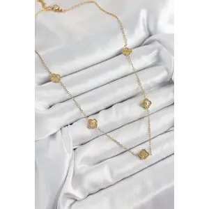 316L Çelik Yonca Model Gold Renk Kadın Kolye