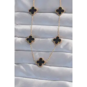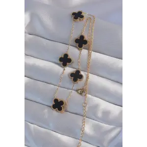 316L Çelik Gold Renk Siyah Mineli Yonca Kolye