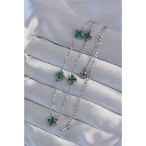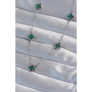 316L Çelik Gümüş Renk Minimal Yeşil Mineli Yonca Kolye