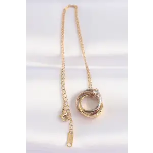 316L Çelik Zincir Zirkon Taşlı Altın Renk Nazarlı Terlik Tasarımlı Kolye