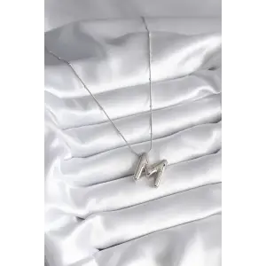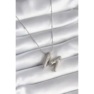 316L Çelik Gümüş Renk Bubble "M" Harf Model Kadın Kolye